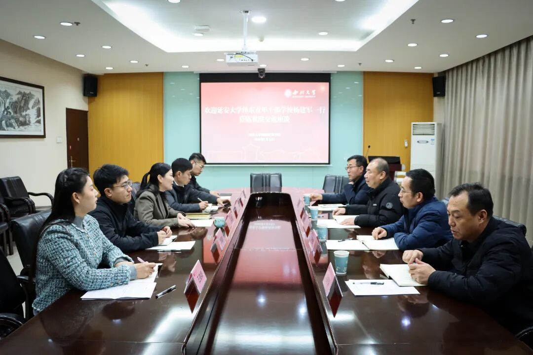 1月12日下午,延安大学泽东青年干部学校校长杨建军、资产经营管理有限公司总经理贾培军一行来我院调研交流。西北大学继续教育学院院长、中华文化培训学院常务副院长孙二丽主持座谈会。